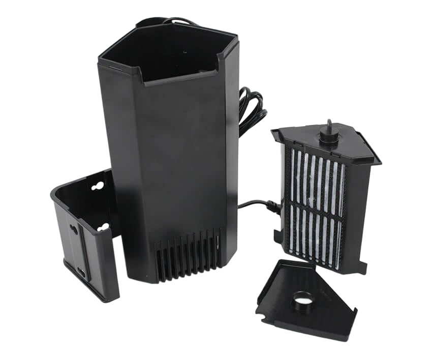Goed basis hoekfilter voor kleine aquaria (tot ± 40 L). Compact en energiezuinig, veilige filtratie voor garnalen en kleine vissen.