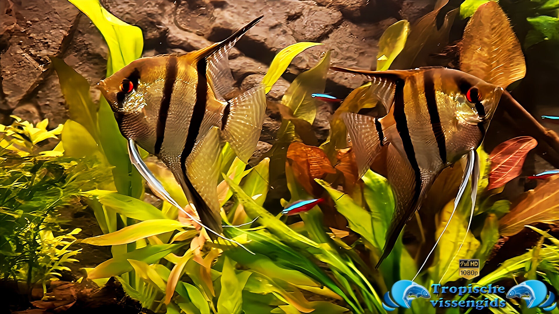 Beplanting: Zorg voor veel planten waarvan Vallisneria soorten en andere stengelplanten zeker niet mogen ontbreken want daar hangen ze graag tussen. Denk er wel om dat er genoeg zwemruimte overblijft.