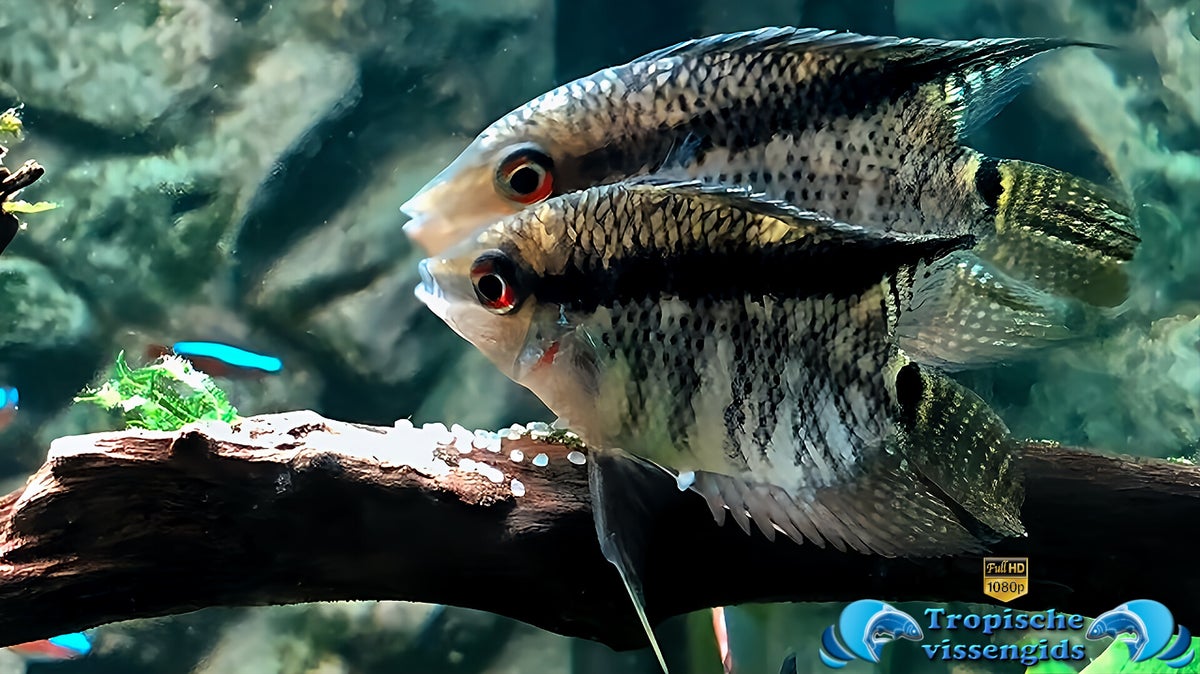 Voedsel: In het wild is deze vis een echte alleseter, met een voorkeur voor zowel gewervelde als ongewervelde prooien. Om ze in het aquarium gezond en vitaal te houden, hebben ze een gevarieerd dieet nodig. Droogvoer zoals vlokken of pellets kan dienen als basis, maar wissel dit regelmatig af met diepvriesvoer en/of levend voer. Vergeet niet om af en toe ook wat plantaardig voedsel aan te bieden anders willen ze nog wel eens aan de planten gaan knabbelen.