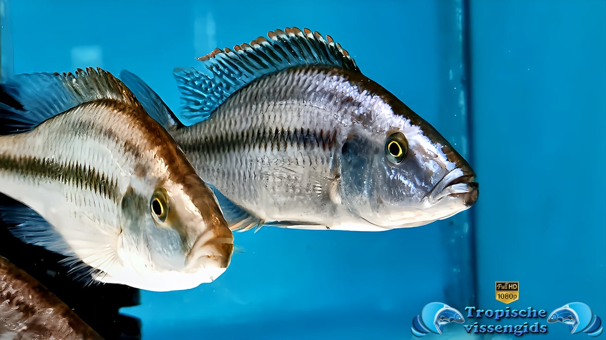 Geslachtsonderscheid: Mannetjes groeien groter en krijgen een opvallende blauwe kleur zodra ze volwassen worden, terwijl vrouwtjes hun zilverkleurige uiterlijk behouden.