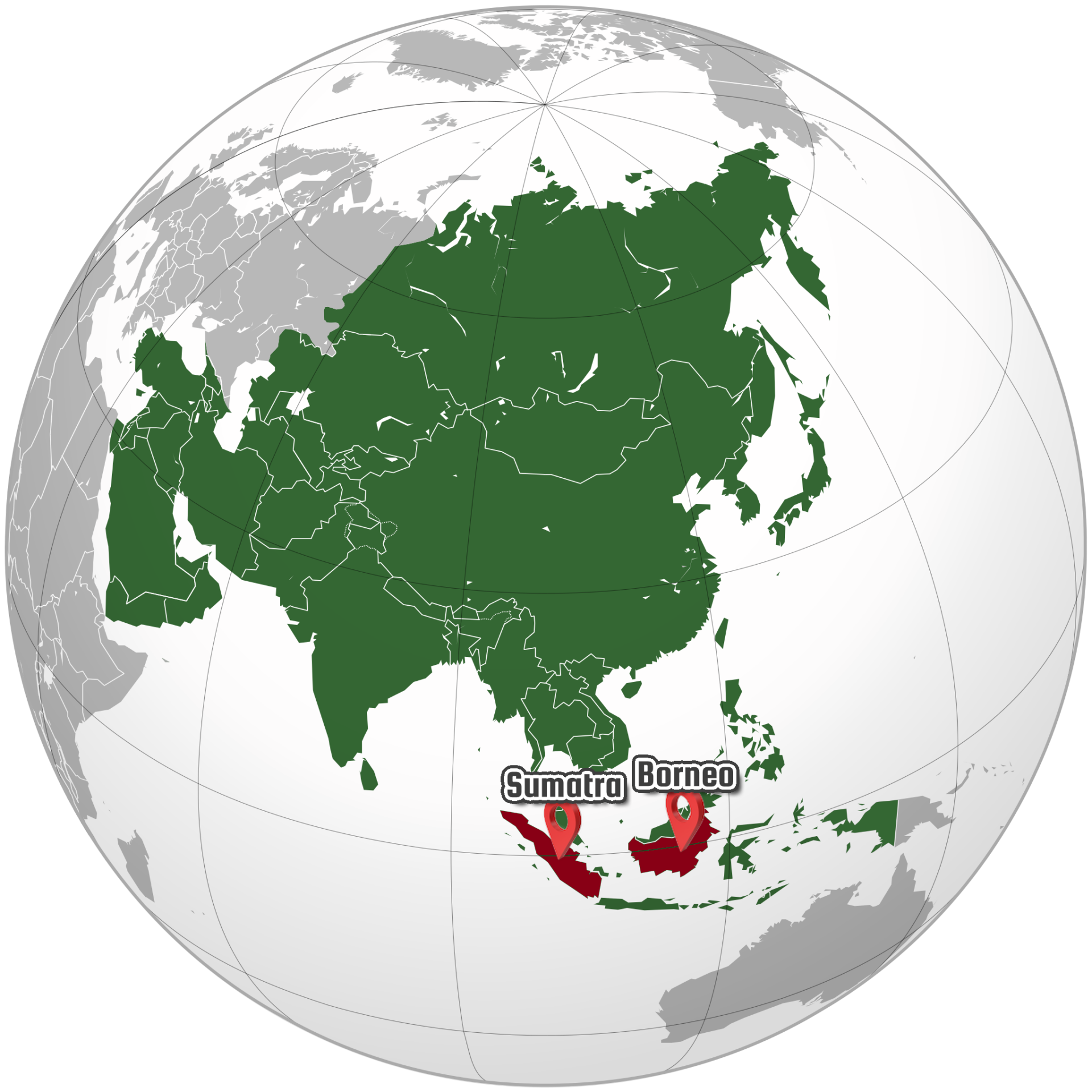 Landen: Indonesië (Borneo en Sumatra).