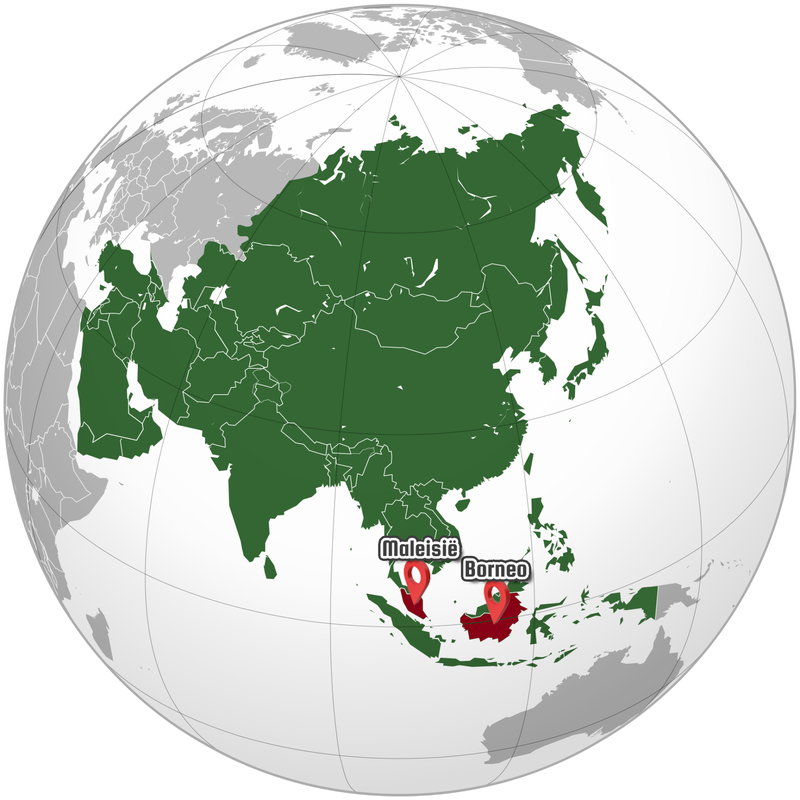 Landen: Maleisië, Indonesië (Borneo).