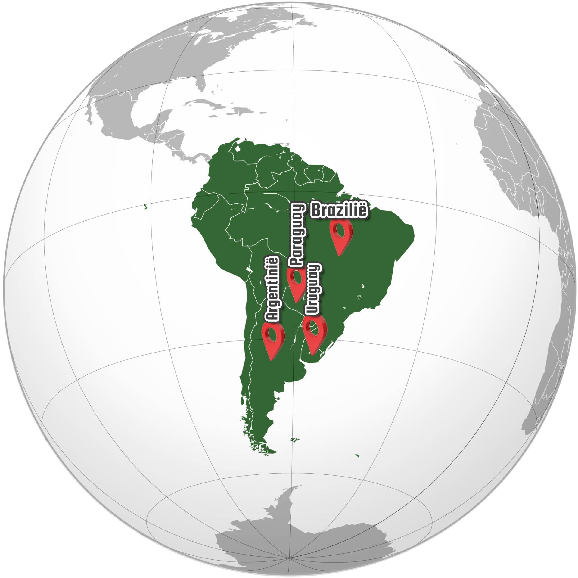 Argentinië, Brazilië, Paraguay en Uruguay.