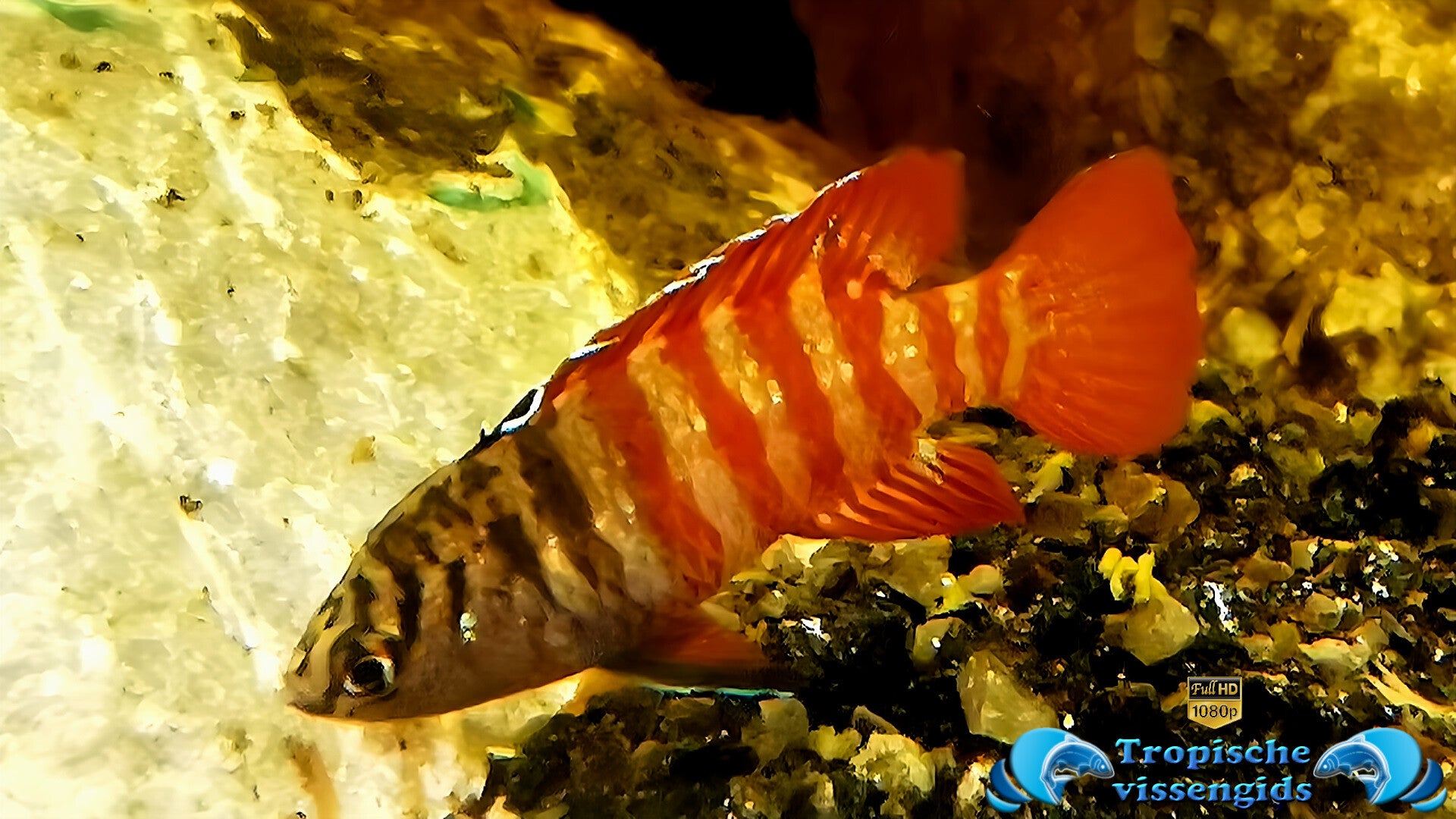 Nederlandse naam: Black Tiger Dwergbaars of Zwarte tijger dario.